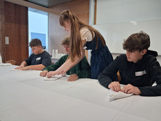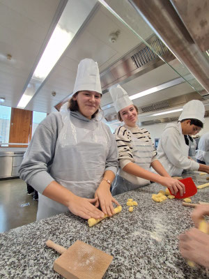 An der Sprachen-Station konnten sie ihr Wissen auf kreative Weise anwenden, beim Serviettenfalten und Tische eindecken lernten sie die Grundlagen professioneller Gastfreundschaft kennen. In der Küche bereiteten die Jugendlichen unter fachkundiger Anleitung Gnocchi mit Tomatensauce und Pesto zu. Zudem mixten sie einen alkoholfreien Cocktail und erhielten beim Tourismus-Einblick interessante Informationen über Ausbildung und Berufsfelder in der Branche.